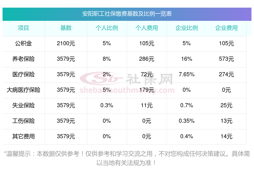 目前该安阳社保缴费基数最新参考为3579.00。(数据仅供参考)