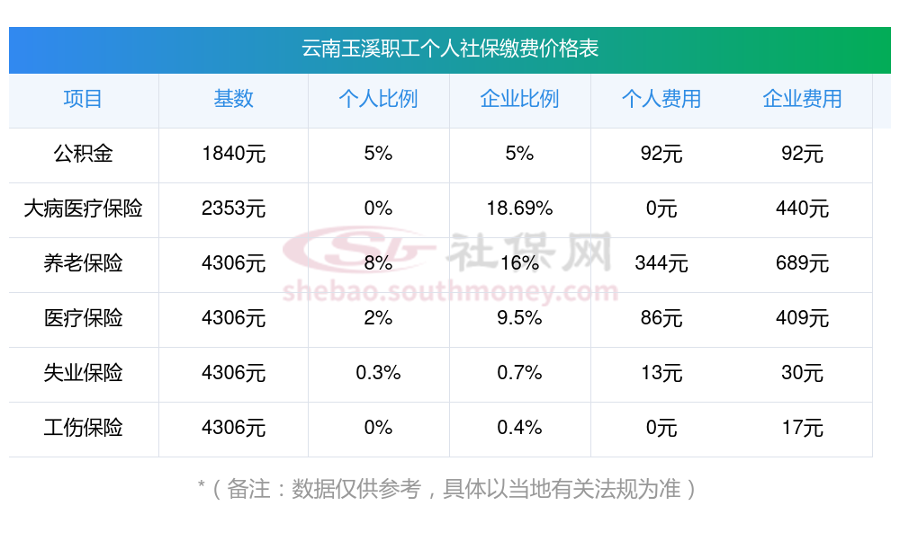 一、2025年云南玉溪职工社保缴费基数是多少钱一个月?职工社保缴纳标准是多少?