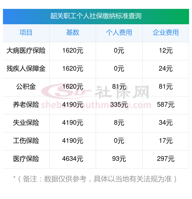 据新社通app显示,韶关社保缴费基数2025年标准,韶关社保费用如下: