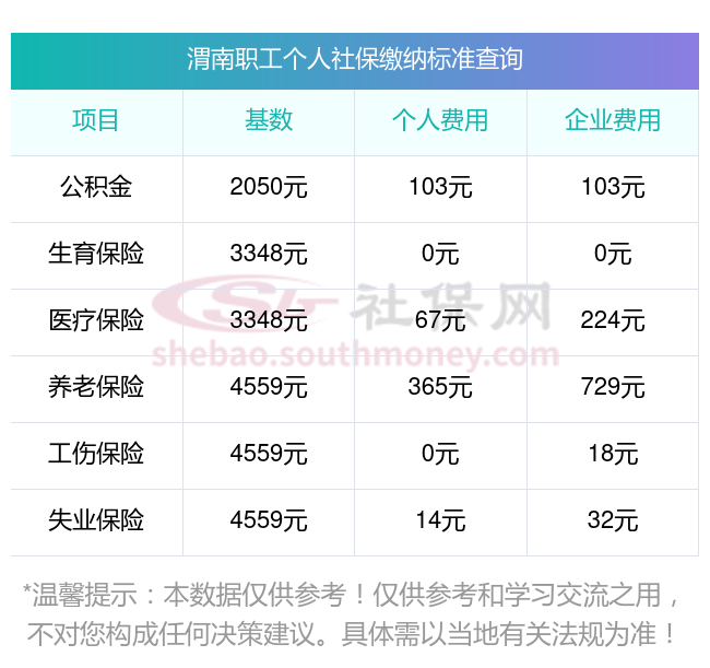 个人社保多少钱一个月??据新社通app获悉:渭南企业职工社保缴费基数为:3579.00元
