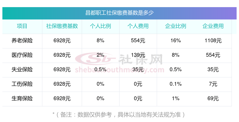 昌都社保缴纳比例是多少?2025年昌都社保缴费多少钱?下表是2024-2025年昌都社保费用明细参考,新社通app-社保缴费查询工具提供的最新数据如下:
