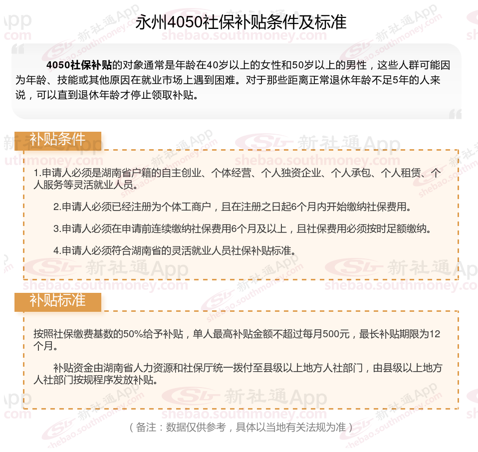 2025永州4050补贴主要针对的是年龄在40岁以上的女性和50岁以上的男性,这些人群通常因为年龄较大而面临就业困难。