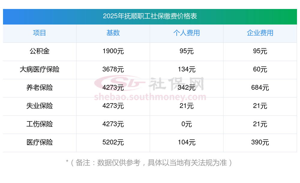 辽宁抚顺缴费社保比例一览 社保公司和个人各交多少?下表是2024-2025年辽宁抚顺社保费用明细参考,新社通app-社保缴费查询工具提供的最新数据如下: