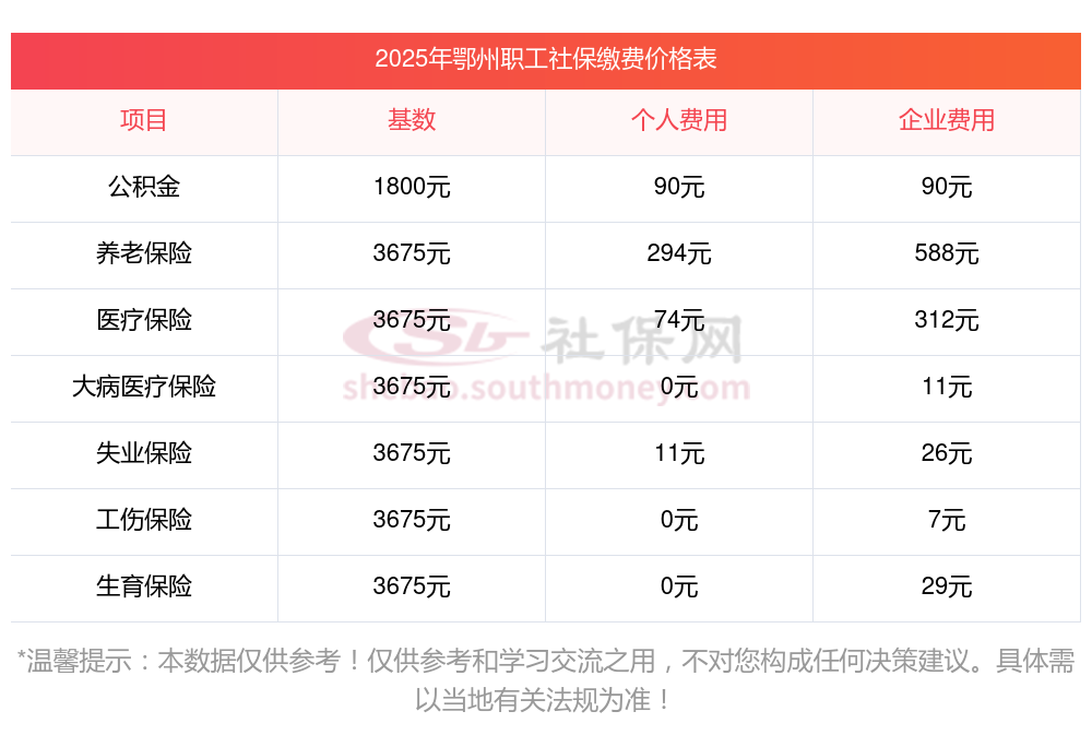 一、2025鄂州职工社保缴费基数是多少钱一个月?职工社保缴纳标准是多少?