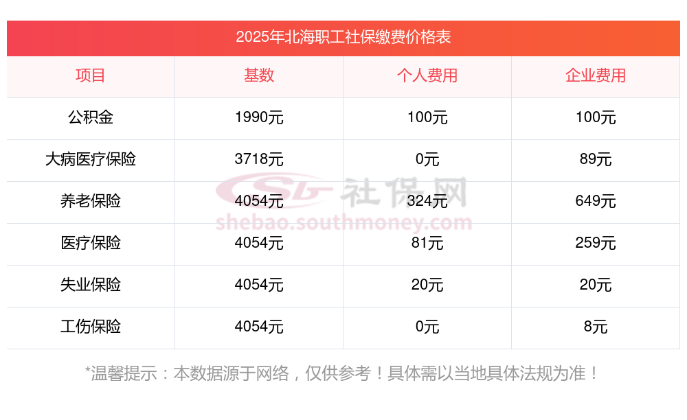和社保小编一起来了解下:北海社保缴费比例是多少?2024-2025年北海社保费用明细参考,新社通app-社保缴费查询工具提供的最新数据如下:
