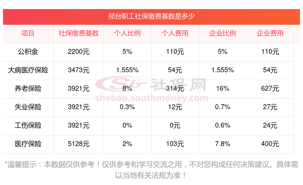 邢台五险一金交多少钱一个月?和社保君一起来看看2024-2025年邢台社保费用明细参考,新社通app-社保缴费查询工具提供的最新数据如下: