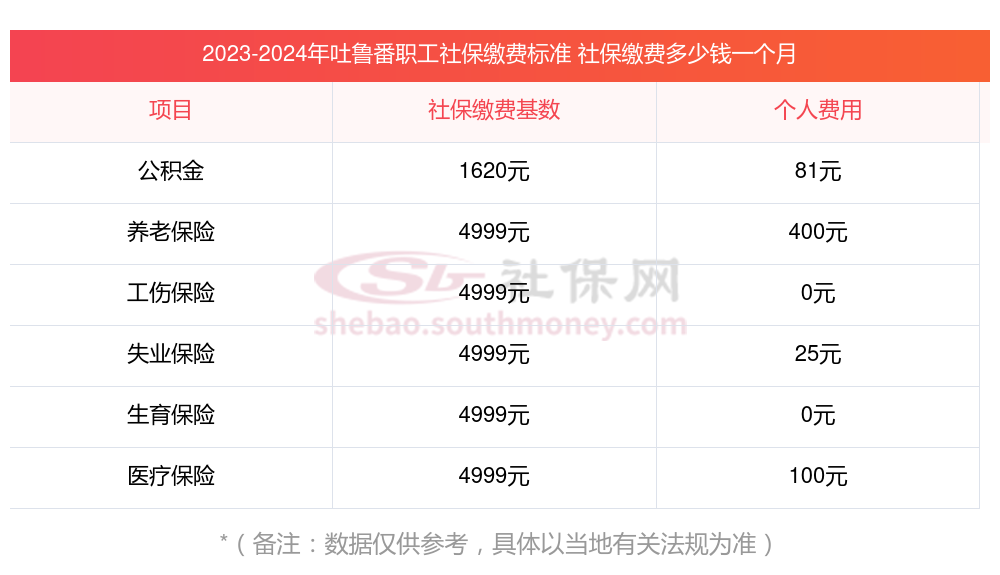 2025年吐鲁番社保缴费多少钱?下表是2024-2025年吐鲁番社保费用明细参考,新社通app-社保缴费查询工具提供的最新数据如下: