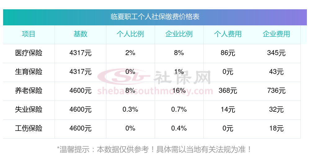 2025年临夏社保缴费多少钱?下表是2024-2025年临夏社保费用明细参考,新社通app-社保缴费查询工具提供的最新数据如下: