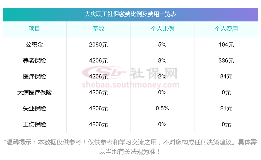 黑龙江社保个人怎么交费?黑龙江社保个人交多少钱?下表是2024-2025年大庆社保费用明细参考,新社通app-社保缴费查询工具提供的最新数据如下: