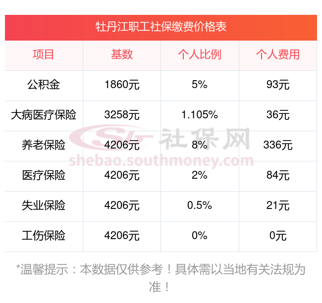 牡丹江缴费社保比例一览 社保公司和个人各交多少?下表是2024-2025年牡丹江社保费用明细参考,新社通app-社保缴费查询工具提供的最新数据如下: