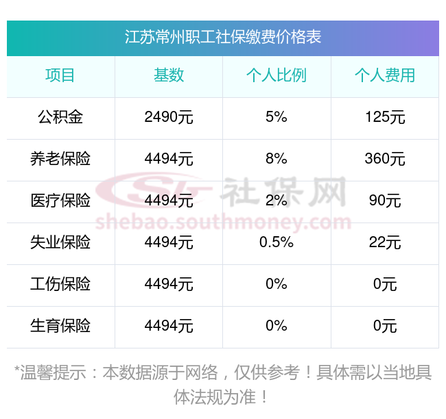 单位员工五险一个月交多少钱 公司加个人是多少?下表是2024-2025年江苏常州社保费用明细参考,新社通app-社保缴费查询工具提供的最新数据如下: