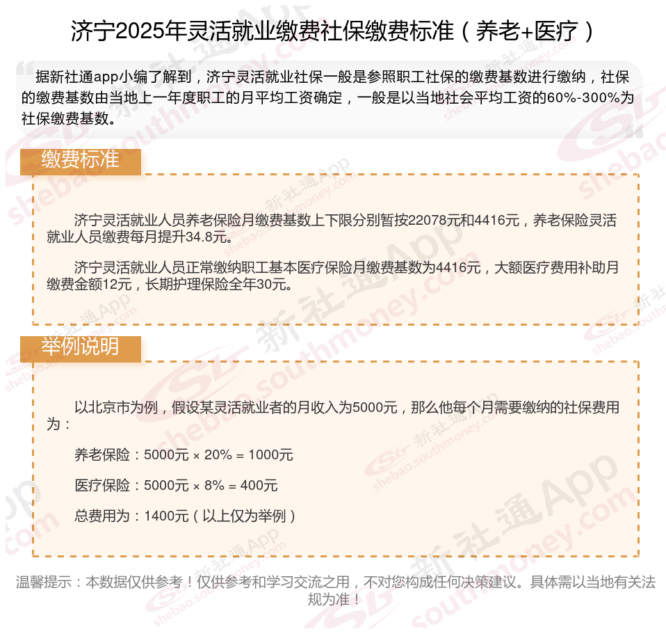 灵活就业,作为一种非传统的就业方式,近年来蓬勃发展。那么2025年济宁灵活就业人员社保需要交多少钱?下面随新社通小编一起来看看。