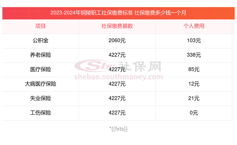 据新社通app显示,铜陵社保缴费基数标准,(社保最低一个月要交多少钱)铜陵社保费用如下: