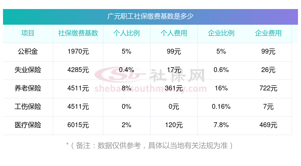 广元缴费社保比例一览 社保公司和个人各交多少?下表是2024-2025年广元社保费用明细参考,新社通app-社保缴费查询工具提供的最新数据如下: