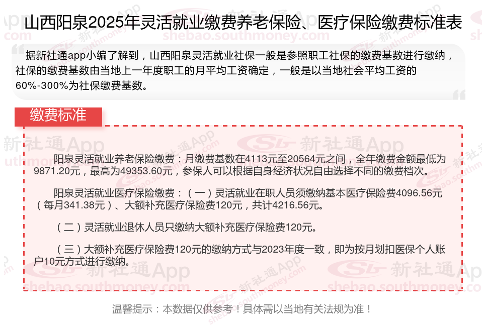 一、山西阳泉2024-2025年个体及灵活就业人员社保养老保险缴费标准(山西阳泉自费社保价格表)