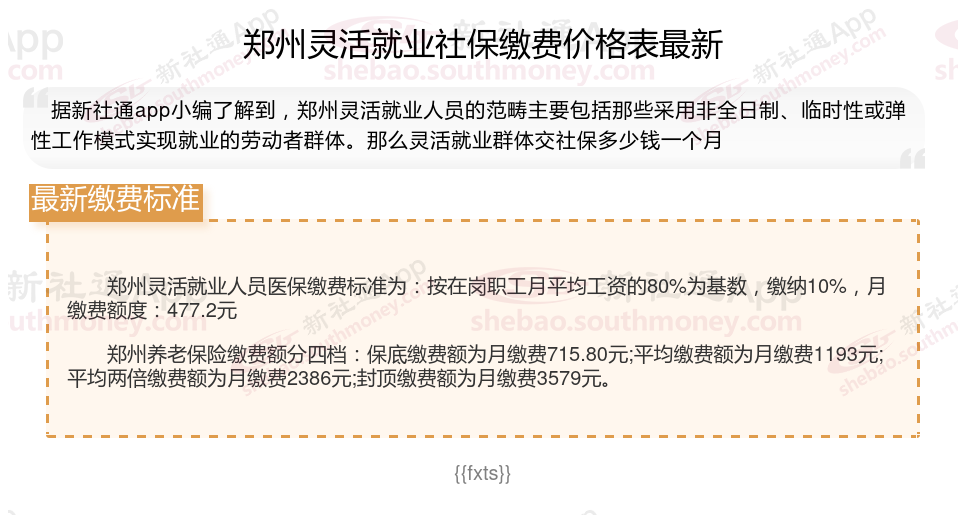 2025年郑州灵活就业人员社保需要交多少钱?随着经济社会的不断发展,灵活就业群体也日益壮大,其社保缴费问题也愈发受到关注。接下来随新社通APP小编一起来看看灵活就业群体社保缴费问题吧。