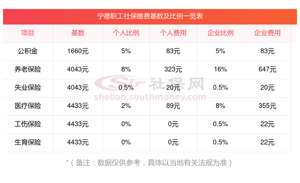 2025年宁德社保缴费多少钱?下表是2024-2025年宁德社保费用明细参考,新社通app-社保缴费查询工具提供的最新数据如下: