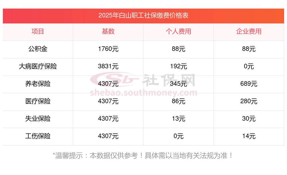 白山缴费社保比例社保公司和个人各交多少?下表是2024-2025年白山社保费用明细参考,新社通app-社保缴费查询工具提供的最新数据如下: