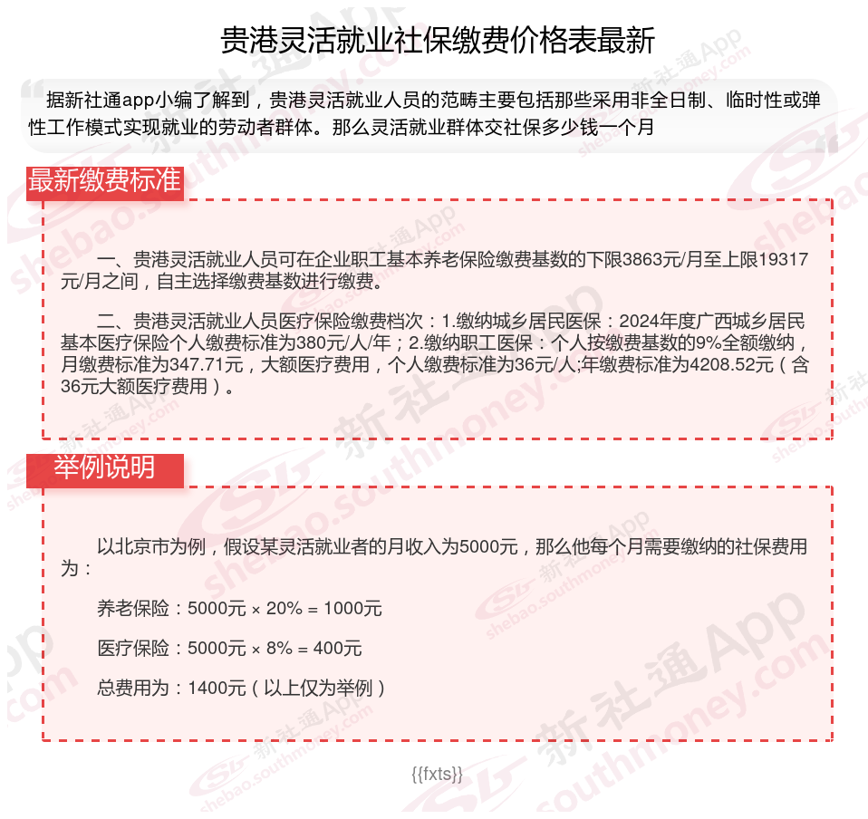 2025灵活就业社保缴费标准的调整,既体现了法规的连续性,又适应了经济社会发展的要求。灵活就业人员应根据自身情况,合理选择缴费基数和缴费比例,确保自身权益得到充分保证。那么2025年贵港灵活就业人员社保需要交多少钱?下面随新社通小编一起来看看。