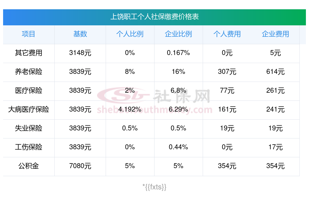 2025年上饶社保缴费多少钱?下表是2024-2025年上饶社保费用明细参考,新社通app-社保缴费查询工具提供的最新数据如下: