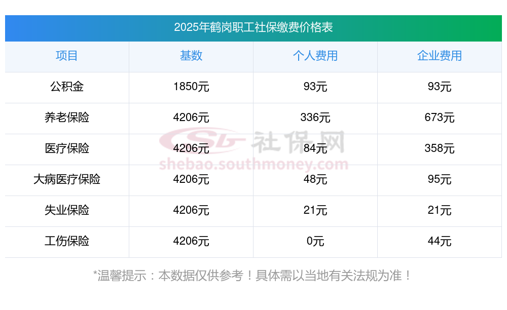 鹤岗职工社保缴费多少钱?2025年鹤岗职工社保缴费基数最新参考为:3579.00,具体如下: