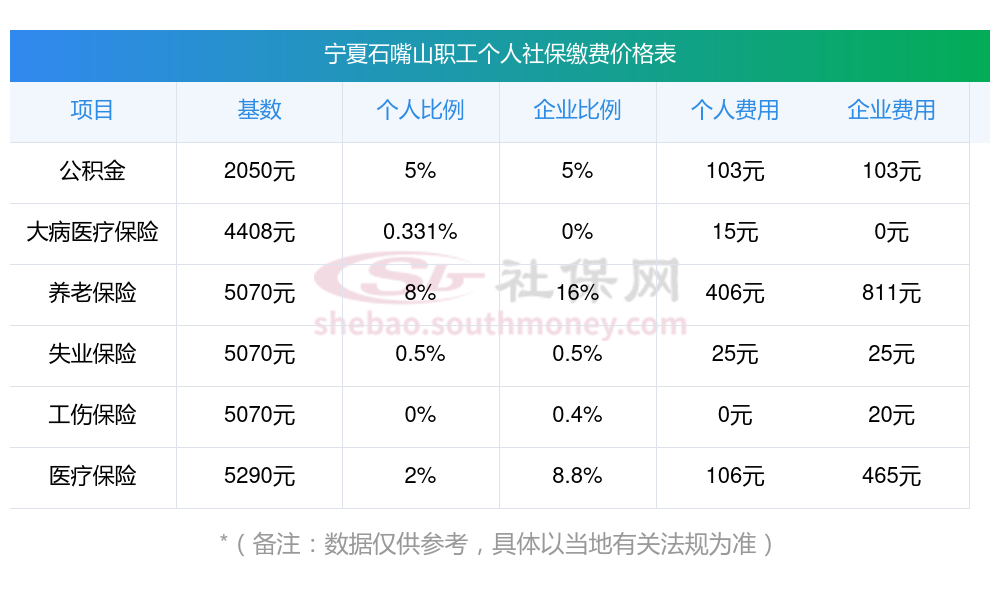 宁夏石嘴山社保缴费比例社保缴费比例包括以下几个部分: