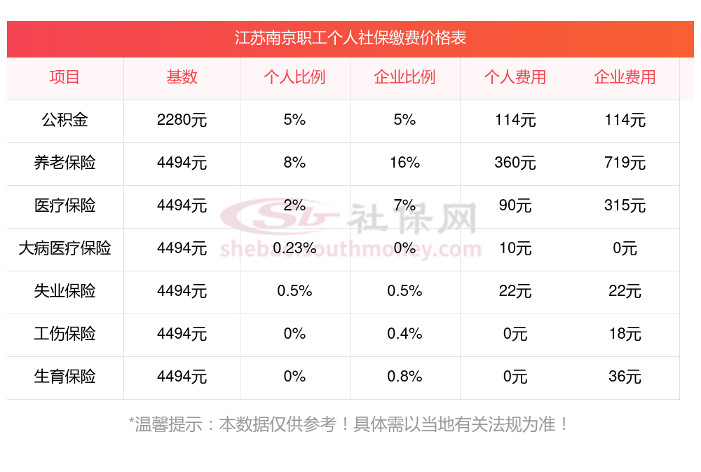 据新社通app显示,江苏南京社保缴费基数2025标准,(社保最低一个月要交多少钱)江苏南京社保费用如下: