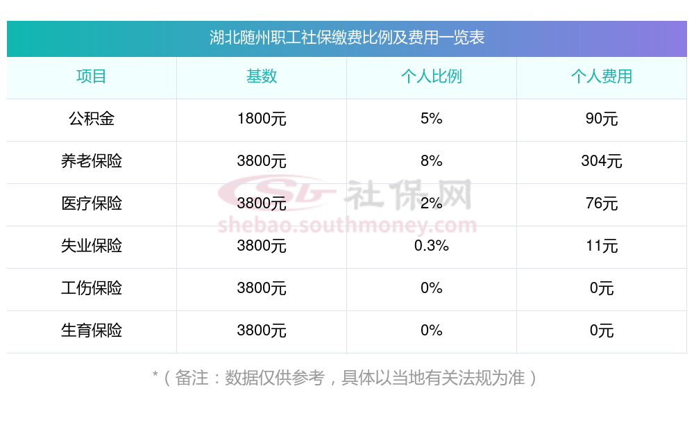 湖北随州社保费用个人和公司的承担比例如下: