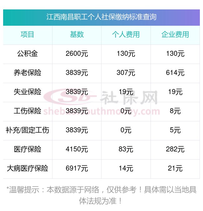 江西南昌社保缴费一个月多少钱?2025年社保缴费最新标准据新社通app-社保缴费查询工具数据显示如下: