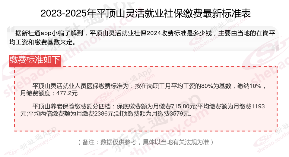 以上就是带来平顶山灵活就业社保缴费标准相关知识,内容及数据仅供参考,希望对你有帮助,欢迎关注/下载新社通app解锁更多社保专业资讯。