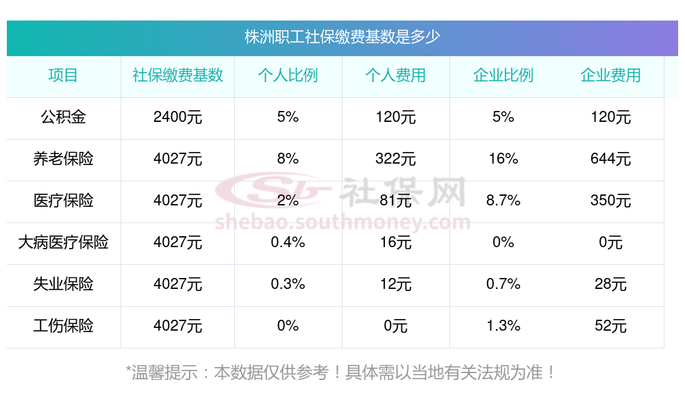 2025年株洲社保缴费多少钱?下表是2024-2025年株洲社保费用明细参考,新社通app-社保缴费查询工具提供的最新数据如下: