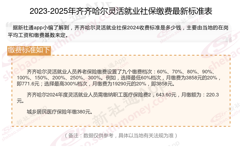 随着经济社会的不断发展,灵活就业群体日益壮大,其社保缴费问题也愈发受到关注。接下来随社保君了解一下2025年齐齐哈尔灵活就业人员社保交多少钱的详细内容。