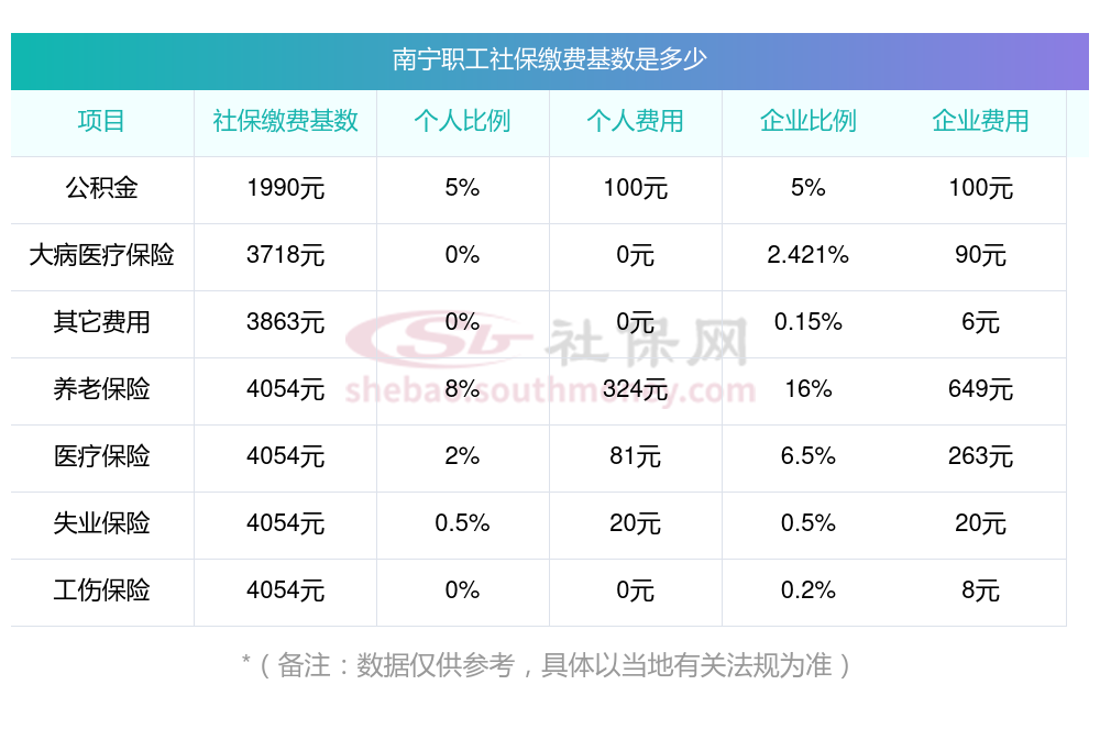 一、2025年南宁职工社保缴费基数是多少钱一个月?职工社保缴纳标准是多少?