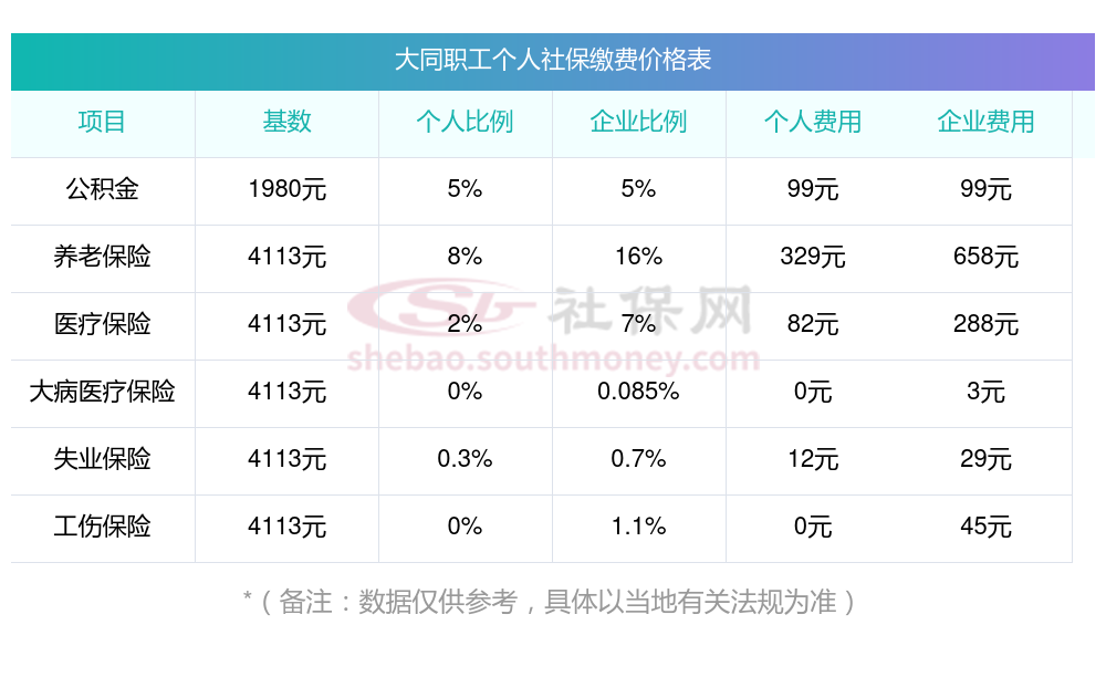 社保公司需要缴纳多少?以大同为例:
