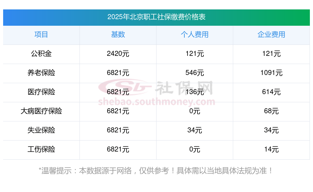 2025年北京社保缴费多少钱?下表是2024-2025年北京社保费用明细参考,新社通app-社保缴费查询工具提供的最新数据如下: