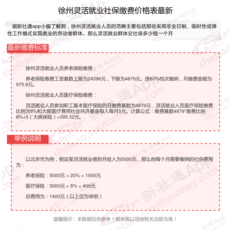 2025年徐州灵活就业人员社保需要交多少钱?随着经济社会的不断发展,灵活就业群体也日益壮大,其社保缴费问题也愈发受到关注。接下来随新社通APP小编一起来看看灵活就业群体社保缴费问题吧。