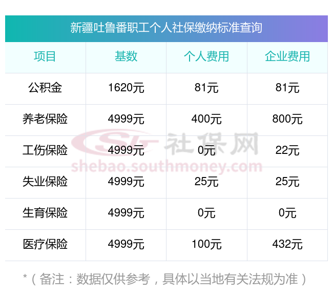 新疆吐鲁番的社保缴费情况,依据2025年最新的缴费标准,我们可以详细地进行如下说明。这些标准是根据新社通app-社保缴费查询工具提供的数据整理得出的:
