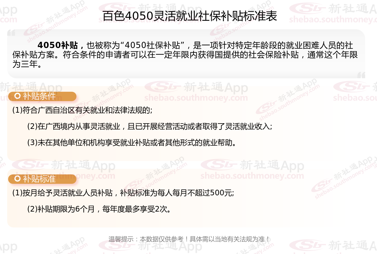 二、百色灵活就业4050社保补贴标准2025年(4050社保条件是什么)