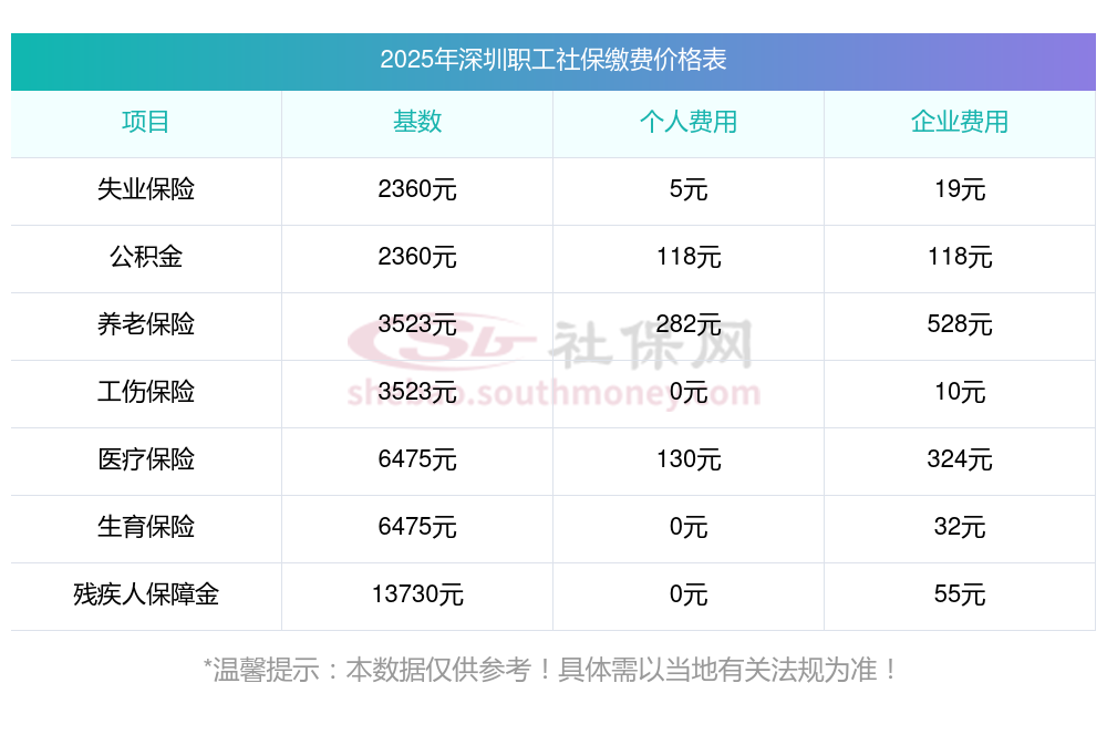 据新社通app小编了解到,2025年深圳社保缴费基数参照为3579.00,深圳社保缴费明细如下: