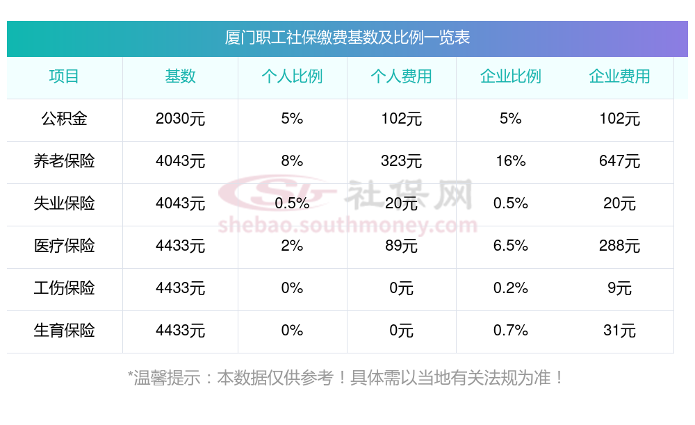 二、厦门职工社保缴费多少钱一个月,2025年职工和公司社保各交多少钱?