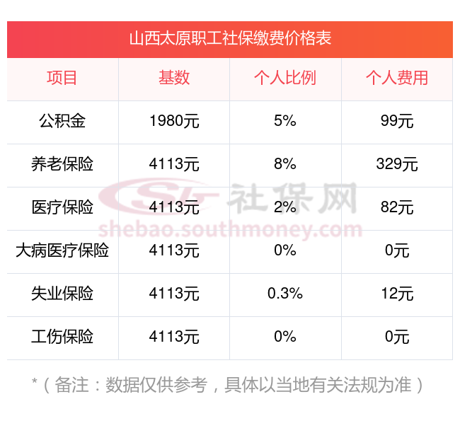 据新社通app显示,山西太原社保缴费基数2025年标准,山西太原社保费用如下: