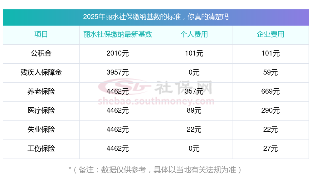 社保指社会保险,也常被称为“五险”主要包括基本养老保险、基本医疗保险、工伤保险、失业保险、生育保险。社保一般是企业为在职员工代扣购买,个人缴纳一小部分,企业缴纳一大部分。??? 那么,丽水社保缴费比例和基数2025年来了 丽水社保缴费最新调整一览表,下面随新社通app小编一起来了解具体内容。