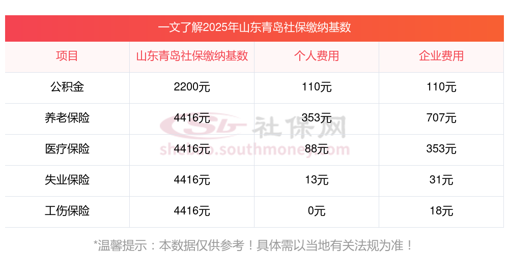据新社通小编了解到,社保缴费基数的确定主要依据职工上一年度的月平均工资,并结合当地社会平均工资的上下限(60%-300%)进行调整。 目前,山东青岛社保缴费基数为:4416.00,个人费用约为:353.28元,企业费用约为:706.56元。