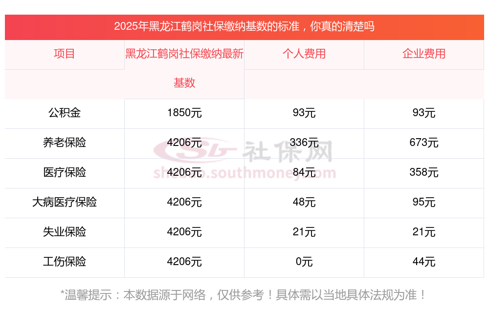 一、据新社通小编了解到,社保缴费基数的确定主要依据职工上一年度的月平均工资,并结合当地社会平均工资的上下限(60%-300%)进行调整。 目前,黑龙江鹤岗社保缴费基数为:4206.00,个人费用约为:336.48元,企业费用约为:672.96元。