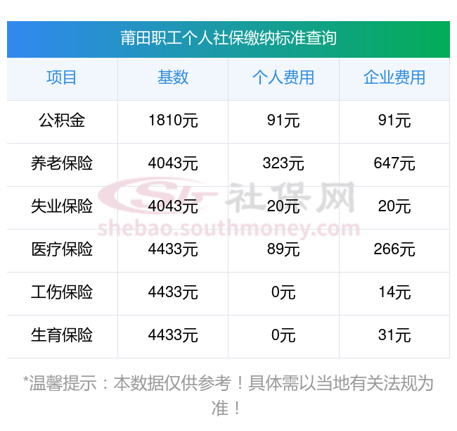 莆田职工社保缴费基数2024-2025年最新标准,如下: