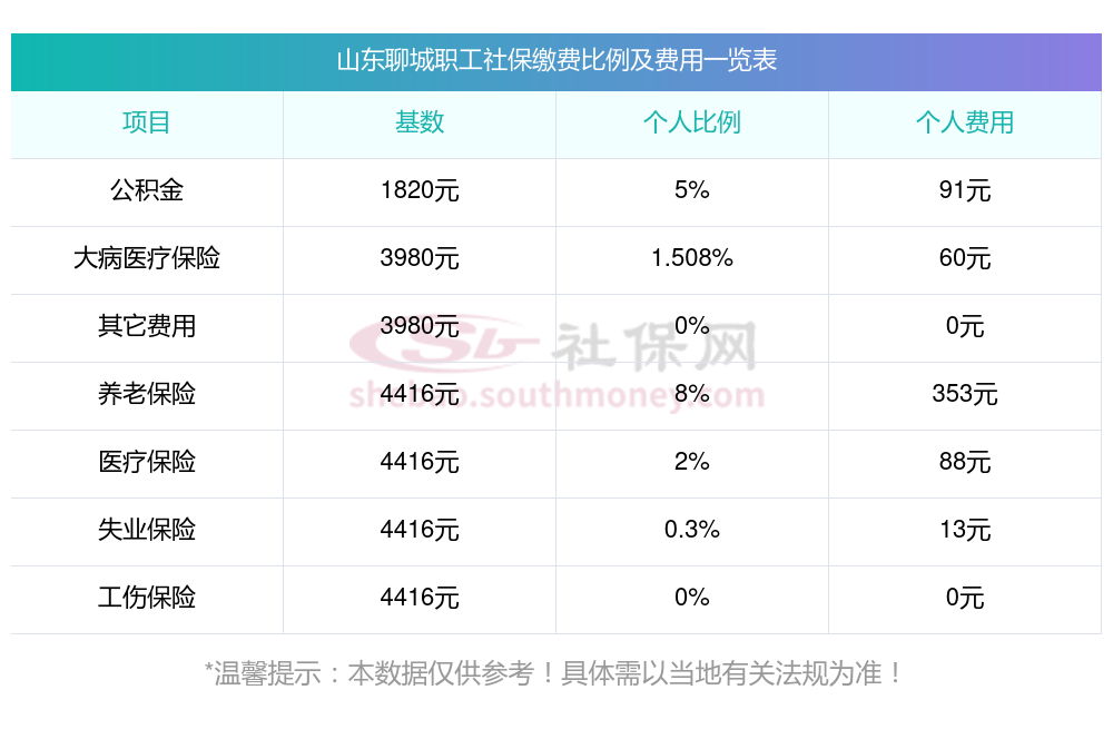 2025年山东聊城社保缴费多少钱?下表是2024-2025年山东聊城社保费用明细参考,新社通app-社保缴费查询工具提供的最新数据如下: