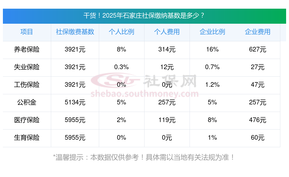 2025年石家庄社会养老缴纳基数及比例一览表 石家庄个人缴纳社保每月要多少钱?缴费基数、缴费比例以及当地的具体法规等因素相互作用,最终确定了社保的缴费金额。