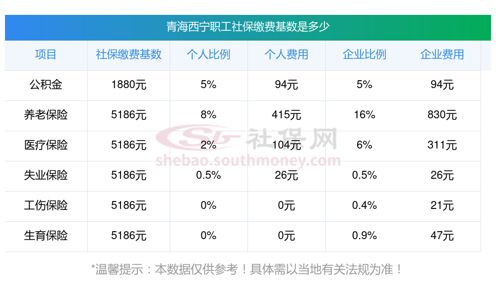 据新社通app显示,青海西宁社保多少钱一个?青海西宁社保公积金缴费基数为:3579.00元?,青海西宁社保费用如下: