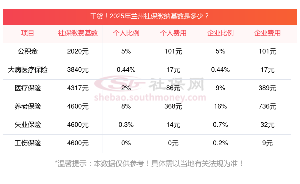 一、据新社通app-查阅了解到,确定社保基数要依据职工上一年度1月至12月的所有工资性收入所得的月平均额,此基数用于计算缴纳社会保险费的工资基数。 目前该兰州社保的缴费基数为:4600.00,个人费用约为:368元,企业费用约为:736元。
