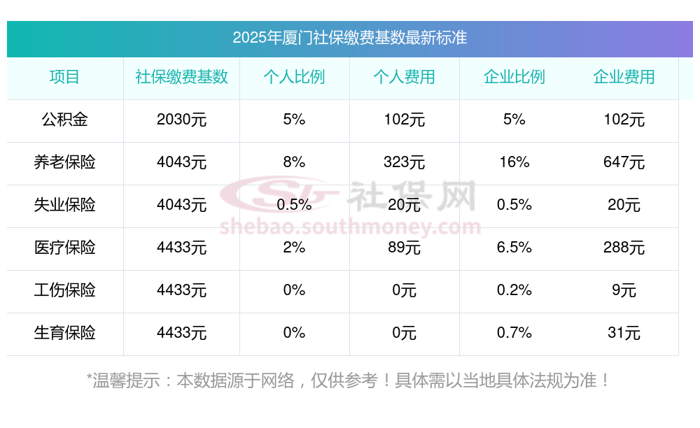 2025年厦门社保个人缴费基数及标准比例是多少,社保缴费金额受缴费基数、缴费比例,以及当地具体法规等多种因素的综合影响而确定。